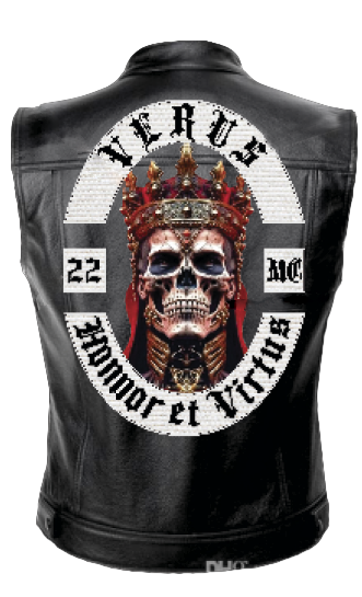 Usamos o que há de mais moderno em nosso colete. Nosso colete e toda sua simbologia carrega nossa essencia, ele foi projetado baseado em nossos princípios. O material usado no tecido das virgulas são trançados as linhas dos bordados são de alta qualidade, nossos pins são em 3D, feitos com um material inoxidável, o colete é de couro legítimo e feito sob medida.